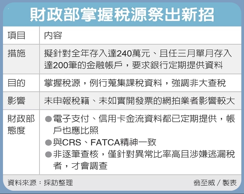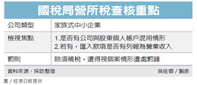 財政部表示,臺灣中小型家族企業多,常有企業主利用個人帳戶(如負責人或配偶)收受營收款項,卻未依規定記載帳簿,且未申報繳納營業稅及營利事業所得稅,遭國稅局查獲後除了補稅還要裁罰。